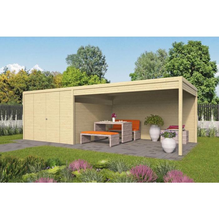 Blokhut - Tuinhuis Valentino Met Overkapping 300 + 400x300cm.