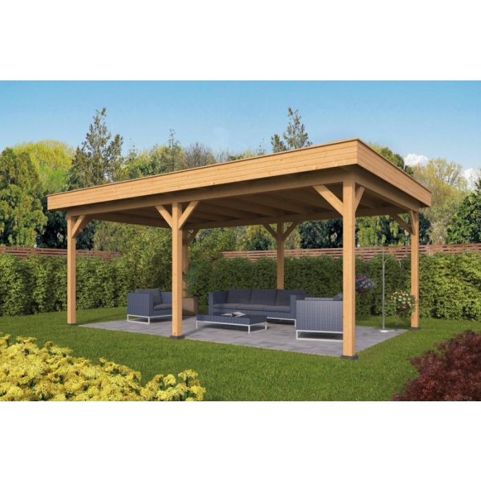 Flat Roof Oslo L Type 1. W478 x D380 x H272cm Planed Larch/Douglas, Dried. Including EPDM and roof gutter. The delivery time is 1 to 3 weeks.