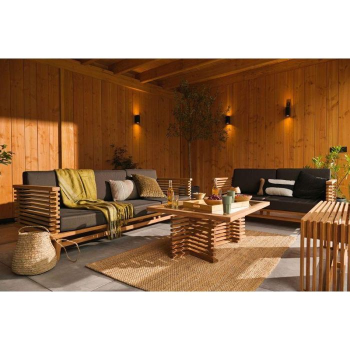 Riverside Teak Fauteuil. Hoort bij Loungeset Riverside. Afmeting 81 x 80 x 83CM. Houtsoort Onbehandeld Teak. Inclusief Extra Stevige Antraciete Kussens. Uitgevoerd Met Modulaire Teak Elementen.