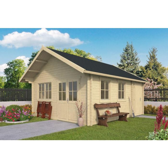 Shed - Berlin summerhouse. Wood type Untreated Whitewood. Wood thickness 44mm. Dimensions 490 x 530 + 70cm. Ridge height 344cm. Excluding 4 Opening Windows with double glazing. Including Wooden Floor And Foundation. Exclusive Roof Shingles. Delivery time is 1 to 3 weeks.For a complete indication you can always make a request via our email address.