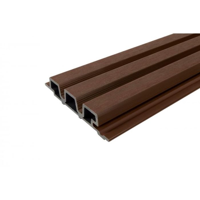 Voor een unieke uitstraling van uw gevel of schutting is deze composiet bekleding van 3,3 x 17 cm een uitstekende keuze. De WEO 35 profielen zijn verkrijgbaar in lengtes van 290 cm en 390 cm. Met hun driedelige strokenstructuur creëren ze een fraaie dieptewerking. De planken, voorzien van een natuurlijke houtnerf, hebben een breedte van 17 cm en geven uw gevel een warme en rustige uitstraling. Deze gevelbekleding is gemaakt van duurzaam composiet, wat garant staat voor een lange levensduur en minimaal onderhoud. Vlekken en vocht verwijdert u eenvoudig met een doek. Belangrijk: Deze profielen hebben brandklasse E en zijn daarom niet geschikt voor montage direct tegen een woning. Voor dergelijke toepassingen kunt u kiezen voor de WEO 60 profielen, zoals de WEO 60 Composiet Ipé.