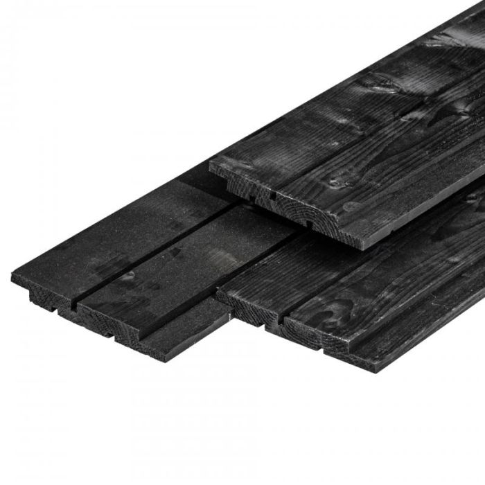 Vuren Channelsiding zwart gespoten 1.8x14.5x300 cm.