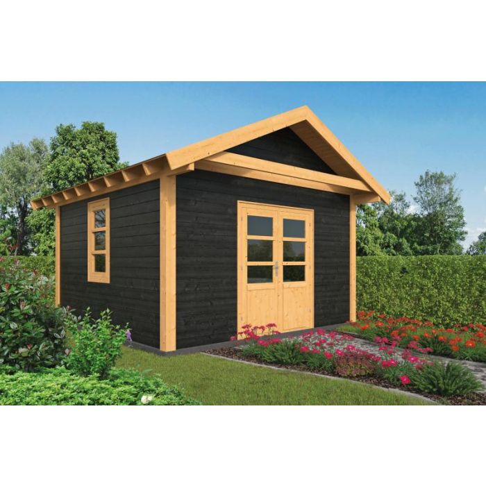 Lariks/Douglas DHZ Plat Zadeldak Tubbergen B400 x D400 x H340cm Zweeds Rabat Zwart Inclusief Schroefpakket. De Levertijd Is 1 Tot 3 Weken.