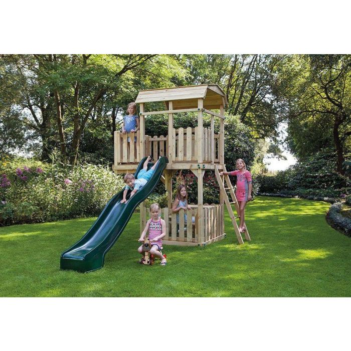 Speeltoren Armin Afmeting 127 x 127 x 310CM. Verdiepingshoogte 150CM. Houtsoort Geïmpregneerd, Geschaafd Grenen. Inclusief 4 Grondankers, Picknickset, Een Trap Met Spijlen En Bevestigingsmaterialen. Exclusief Glijbaan. Wordt Gezaagd En Voorgeboord Geleverd.